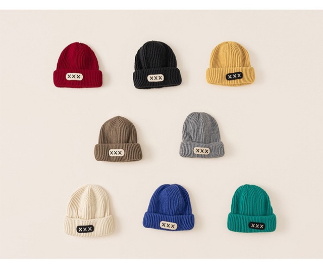キッズ ニットキャップ 冬用 頭囲48~52cm対応 8色展開 厚手ニット素材 保温性抜群 おしゃれシンプルデザイン 子供用 防寒キャップ 黒・オフホワイト・グレー・ブラウン・マスタードイエロー・ブルー・ピンク・ワインレッド