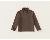 ふんわりとした柔らかい生地で、お子様のデリケートな肌にも優しいキッズ用長袖カットソーです。シンプルな無地デザインに、ハイネックとメロウフリルのアクセントが加わり、ガーリーで上品な印象を演出します。裾や袖口にもさりげなくフリルを施し、可愛らしさをプラス。伸縮性のある素材で動きやすく、着心地も抜群です。