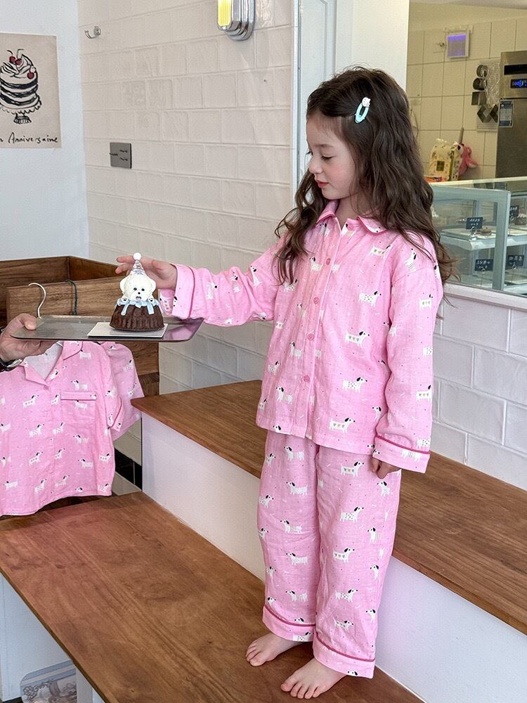 キッズ パジャマ 女の子 長袖 長ズボン ルームウェア セットアップ 上下セット 綿100% 柔らかい ピンク 犬柄 春秋 冬 子供用パジャマ 子ども部屋着 かわいい 寝巻き ナイトウェア 90cm~170cm | Oct.ベビーショップ