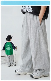男の子用ワイドパンツ 夏用 抗菌加工付き ゆったりデザイン ロングパンツ グレー 綿混素材 通気性抜群 7A抗菌・快適速乾・柔らかい生地 刺繍ロゴ入り サイドポケット付き キッズジュニア ボトムス 110〜170cm対応 | Oct.ベビーショップ