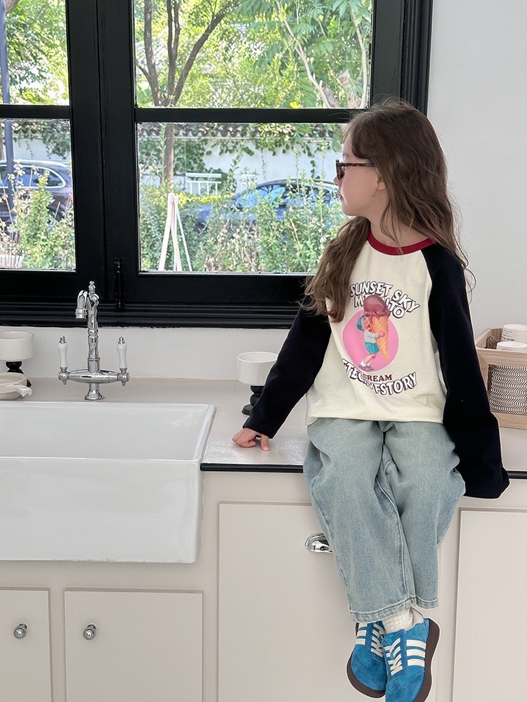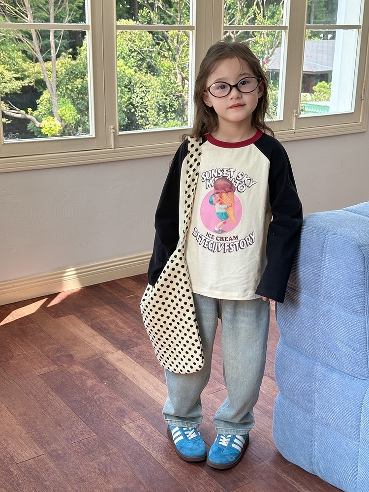 子供Tシャツ キッズ長袖 コットン100% ラグラン ブラックスリーブ プリントトップス 韓国子供服 女の子 男の子 カジュアル ナチュラル 春秋 通園 通学 シンプル おしゃれ
