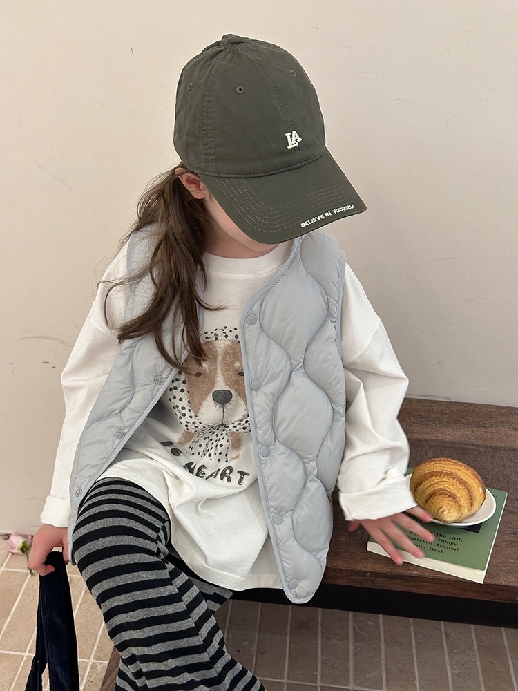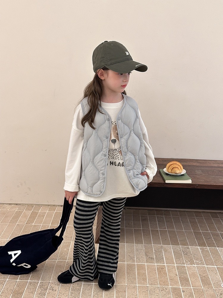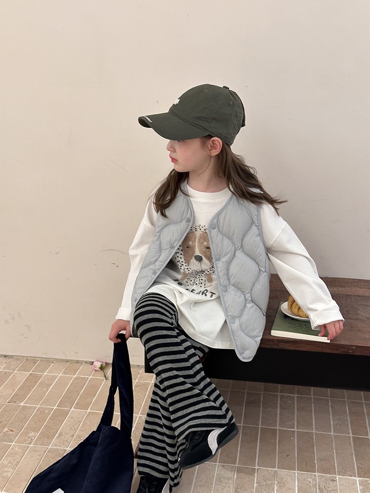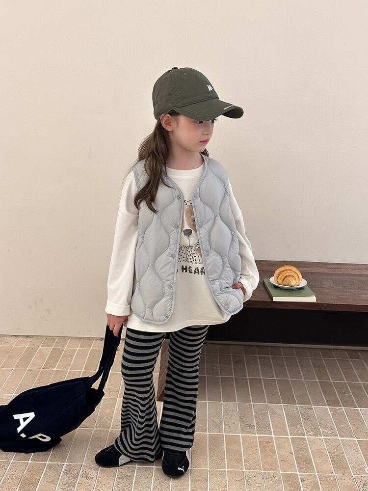 キッズベスト 中綿ベスト キルティングベスト 子供ベスト ライトグレー 防寒 軽量 秋冬 女の子 男の子 通園 通学 韓国子供服 ナチュラル シンプル カジュアル おしゃれ