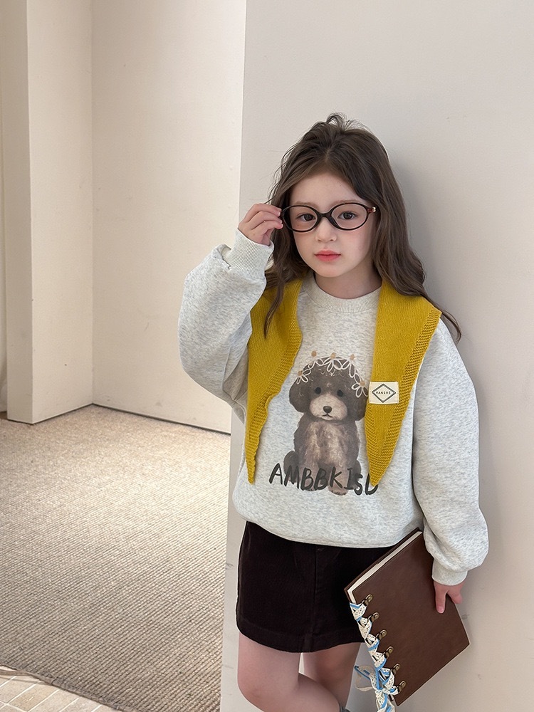 子供服 トレーナー スウェット 長袖 犬プリント 裏毛 女の子 男の子 春秋 韓国子供服 カジュアル ナチュラル コットン混 デイリー服