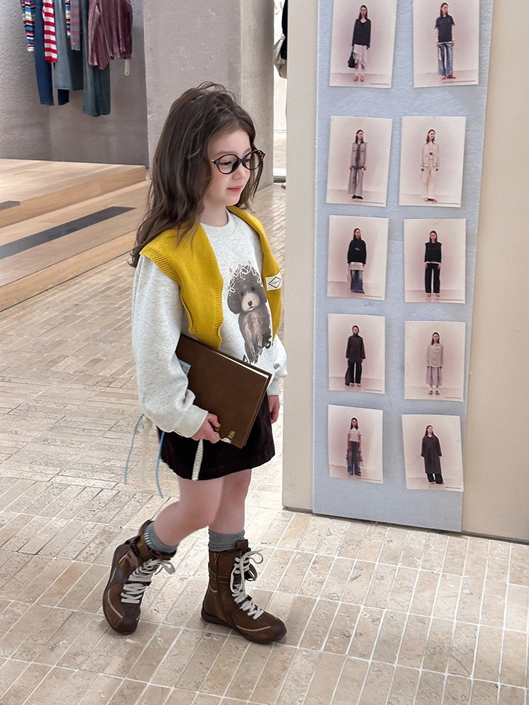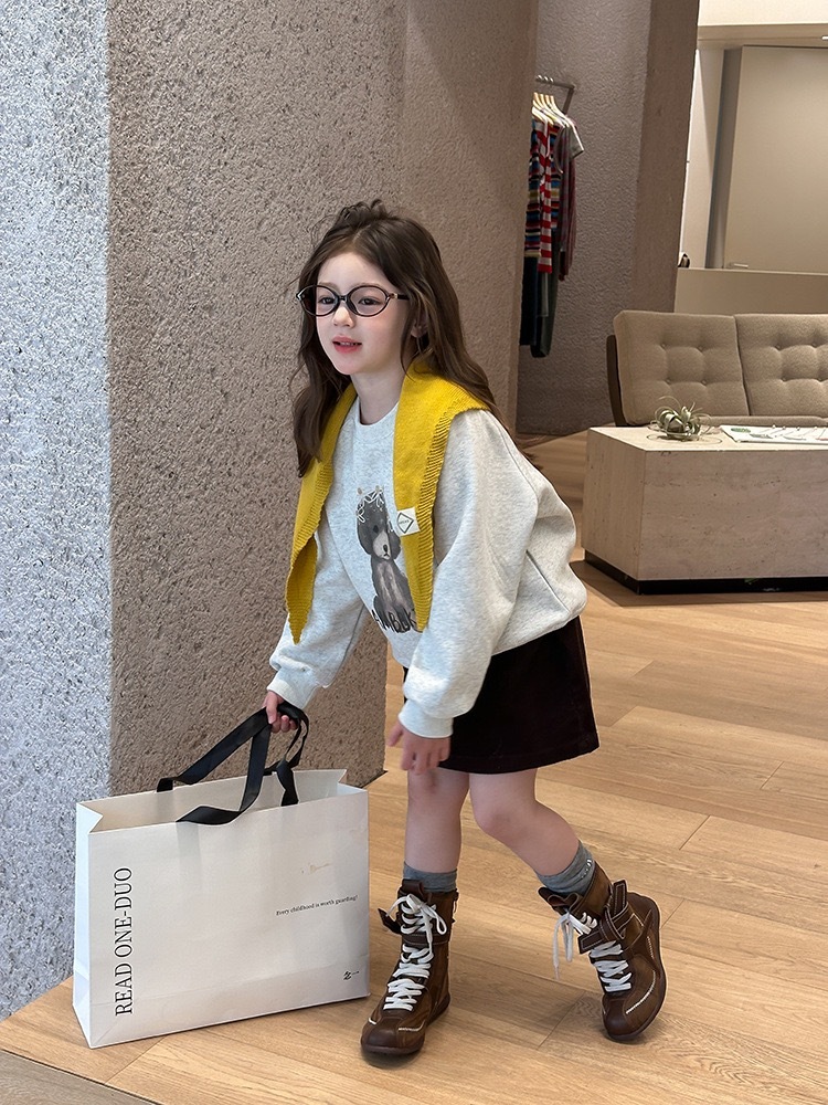 子供服 トレーナー 犬プリント グレー 裏毛スウェット 長袖 ゆったりデザイン ナチュラルカラー 春秋 カジュアル トップス 女の子 男の子 韓国風 コットン混素材 柔らかい着心地 | Oct.ベビーショップ