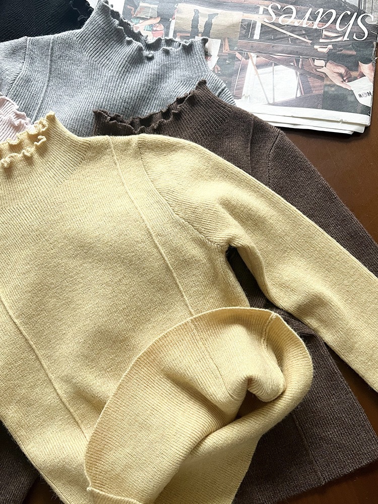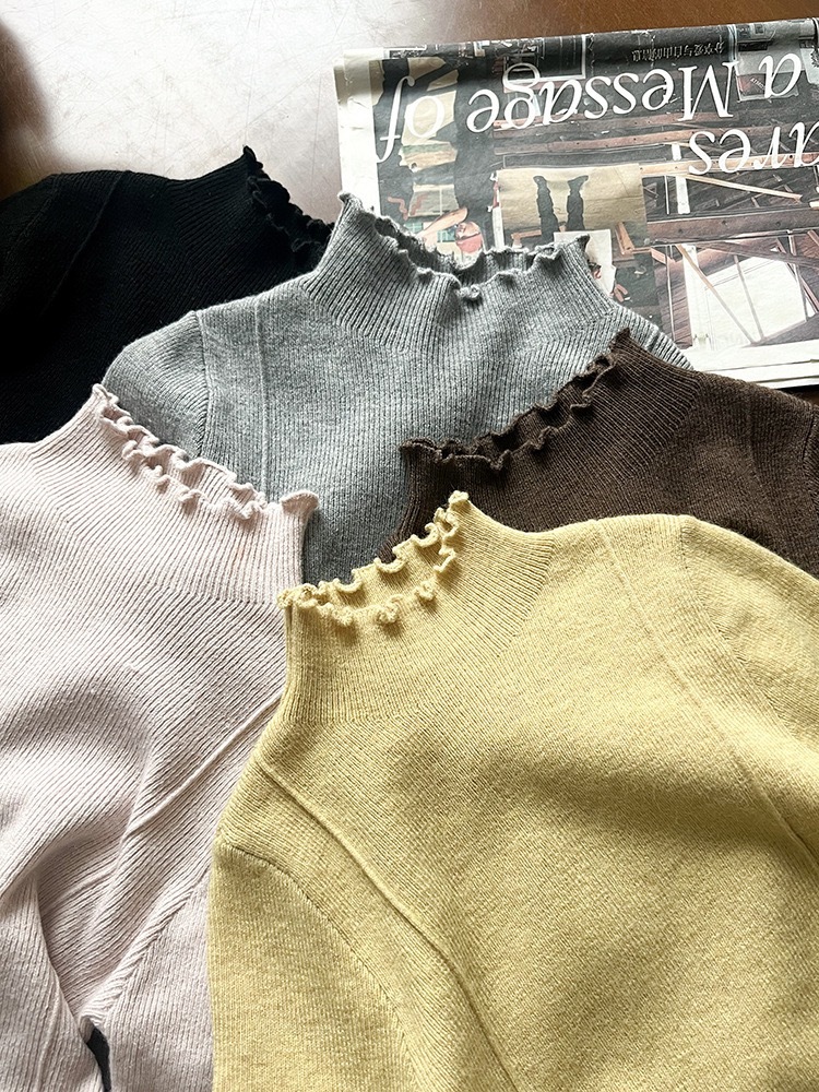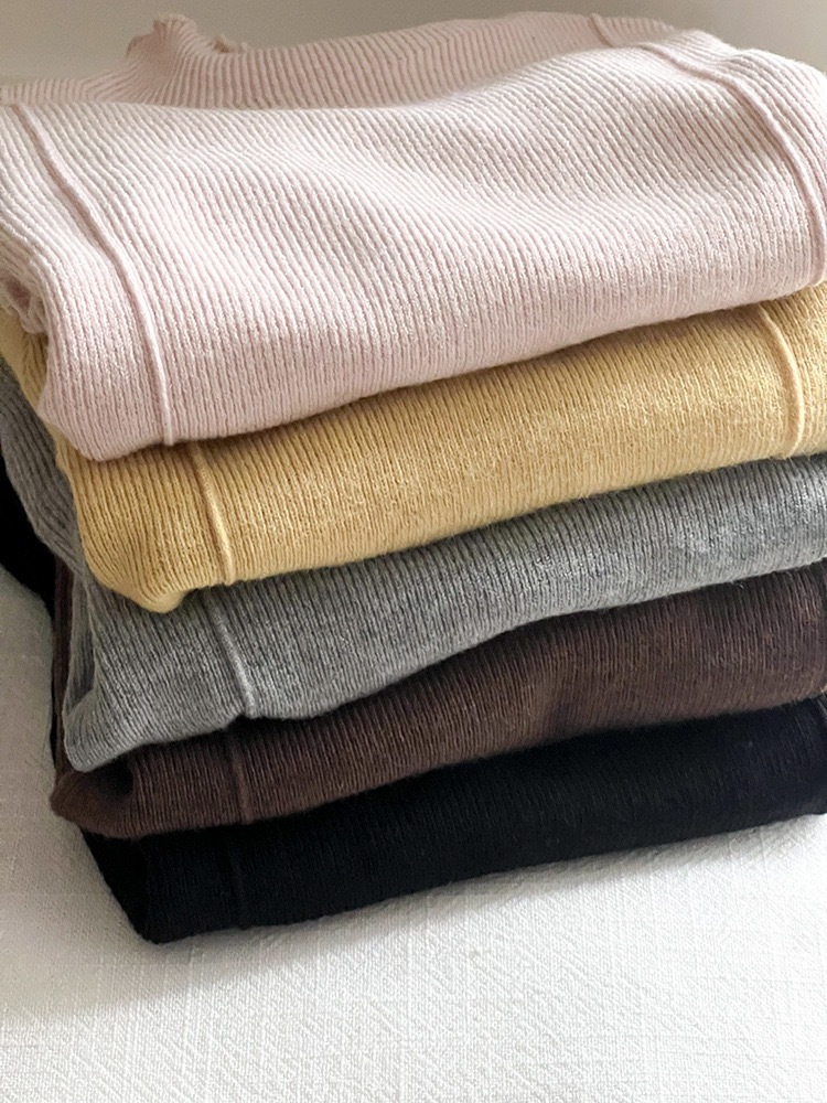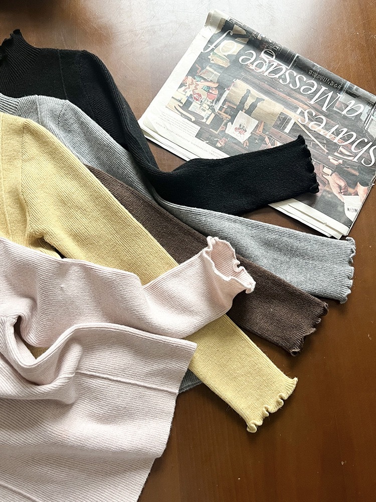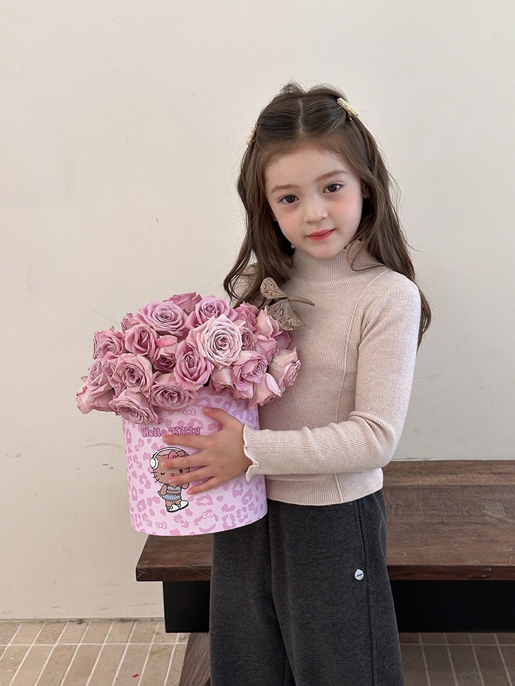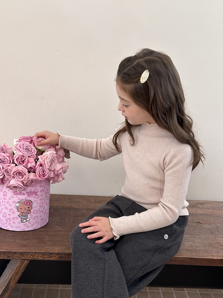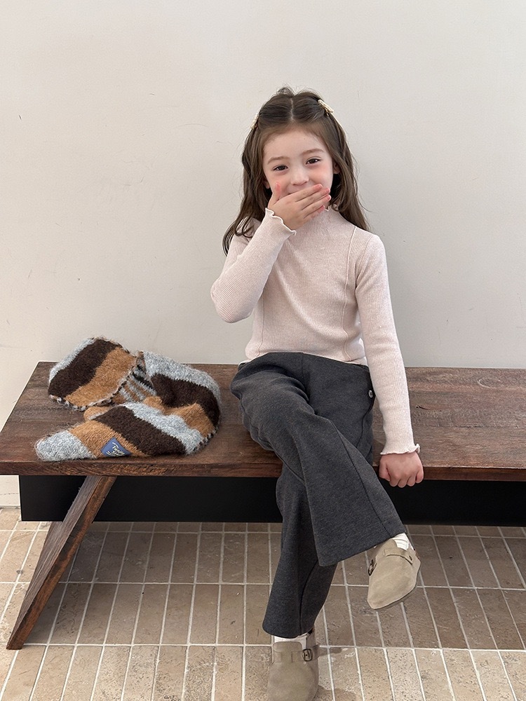子供服 ニット トップス リブ ハイネック 長袖 ベージュ メロウ 女の子 男の子 秋冬 韓国子供服 シンプル ナチュラル インナー 伸縮性 柔らかい着心地