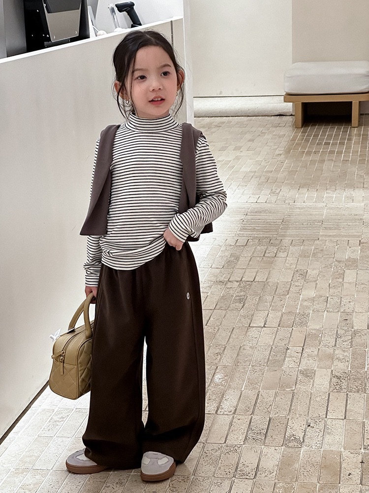 子供服 ボーダー トップス 長袖 ハイネック アイボリー ブラックライン 韓国子供服 秋冬 シンプル ナチュラル カジュアル 男女兼用 伸縮素材 インナー