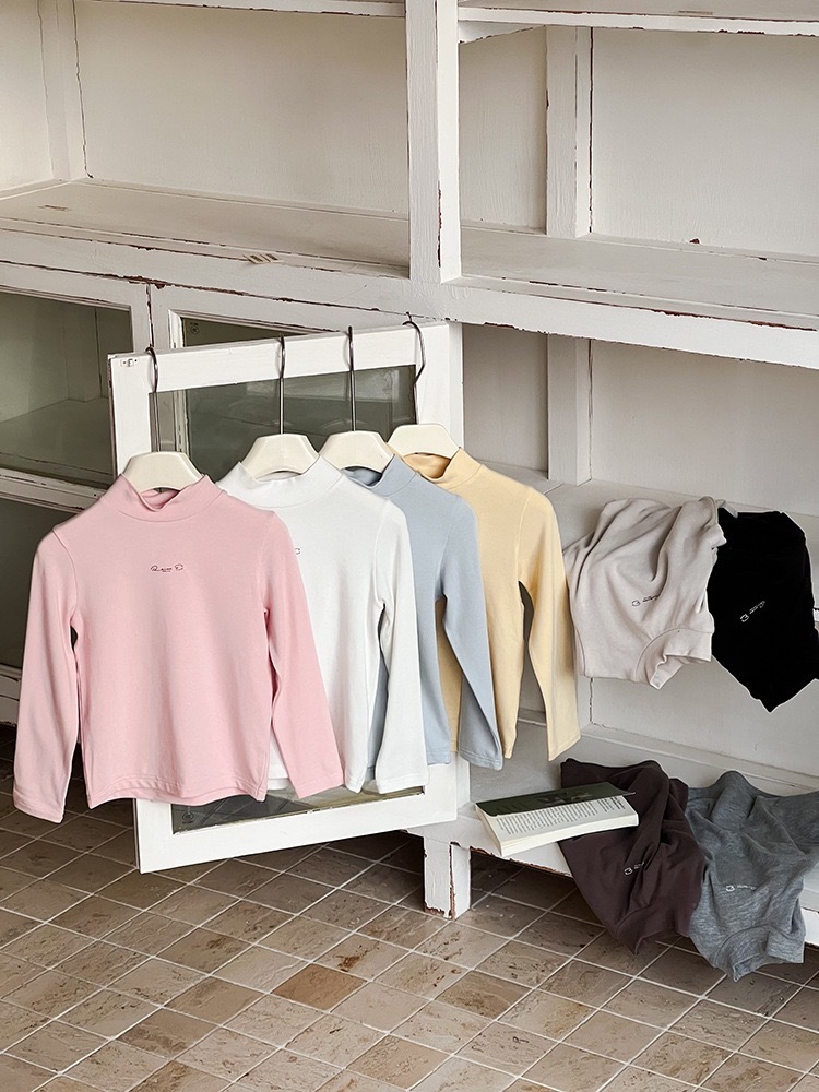 子供服 長袖 ハイネック トップス グレー ロゴ入り 秋冬 カジュアル シンプル 韓国子供服 ナチュラル 男女兼用 柔らか素材 ストレッチ