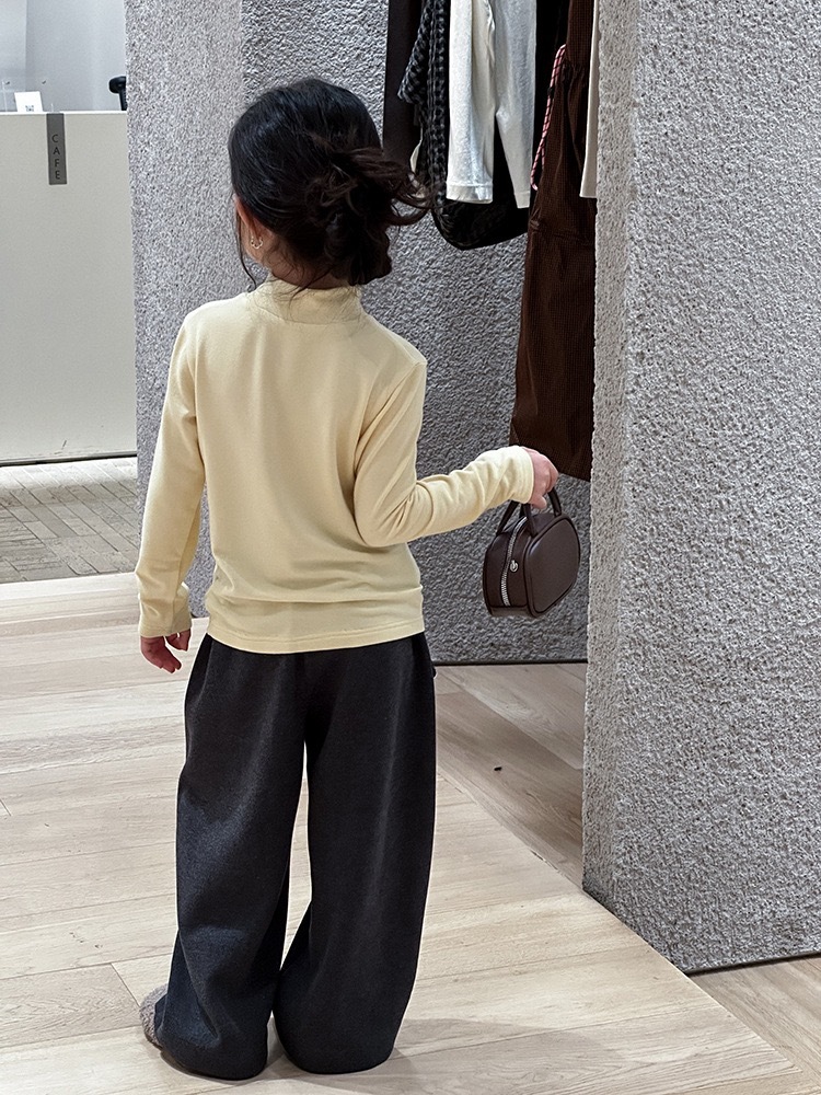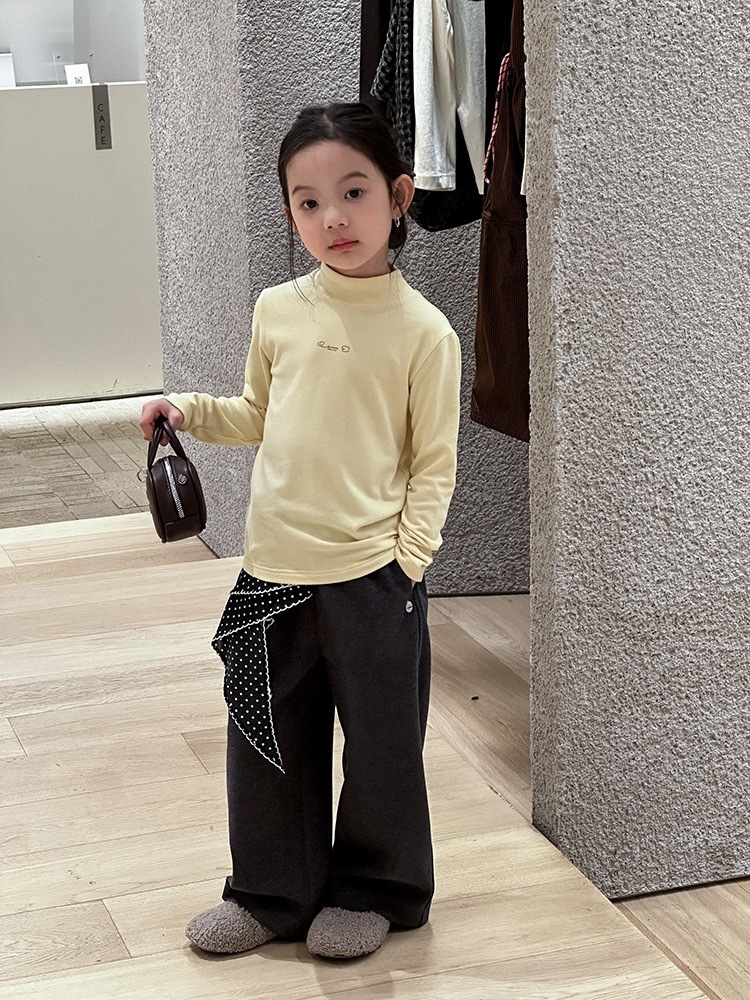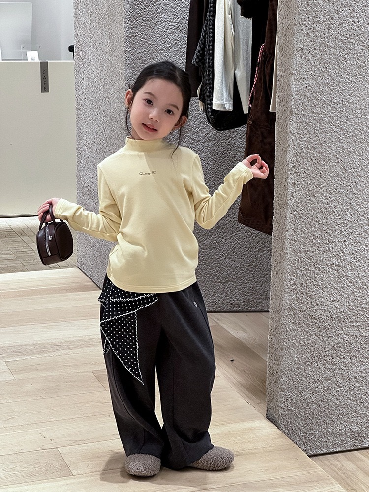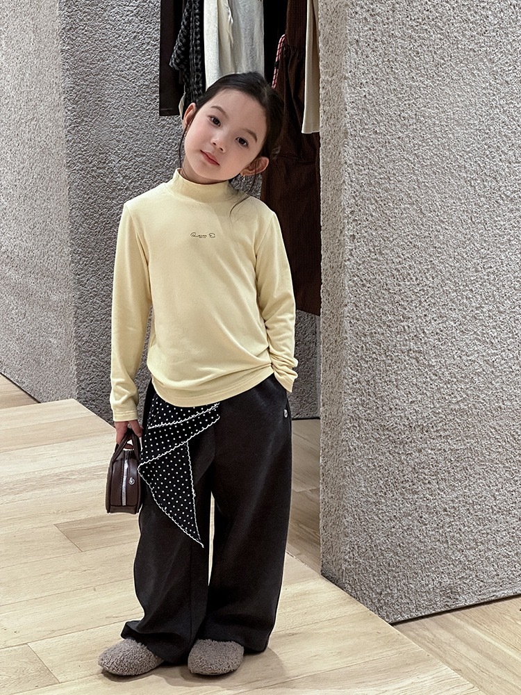 子供服 長袖 ハイネック トップス イエロー ロゴ入り 秋冬 カジュアル シンプル 韓国子供服 ナチュラル 男女兼用 柔らか素材 ストレッチ