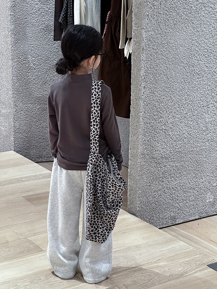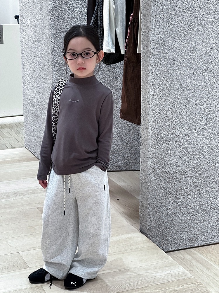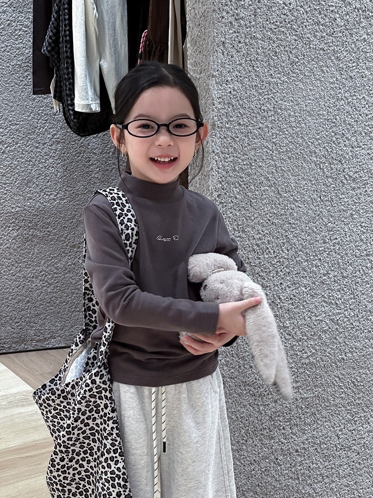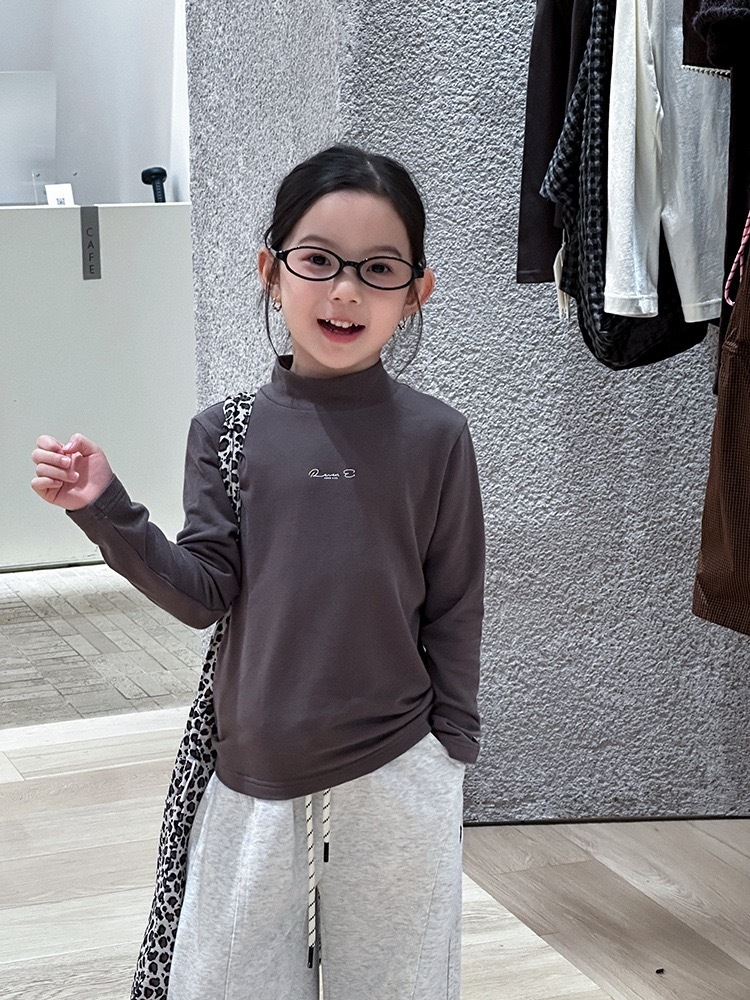 子供服 長袖 ハイネック トップス チャコールグレー ロゴ入り 秋冬 カジュアル シンプル 韓国子供服 ナチュラル 男女兼用 柔らか素材 ストレッチ