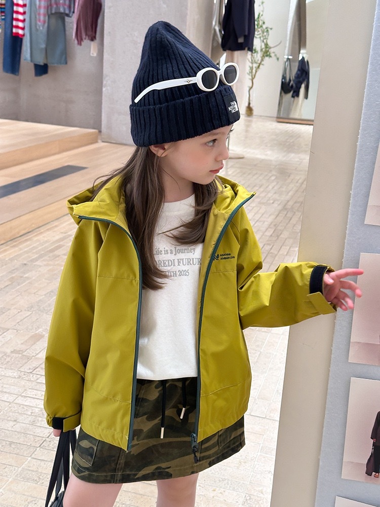 子供服 ジャケット 撥水 防風 マスタードイエロー 軽量 春秋 通園 通学 カジュアル 韓国子供服 男女兼用 キッズアウター レイン対応