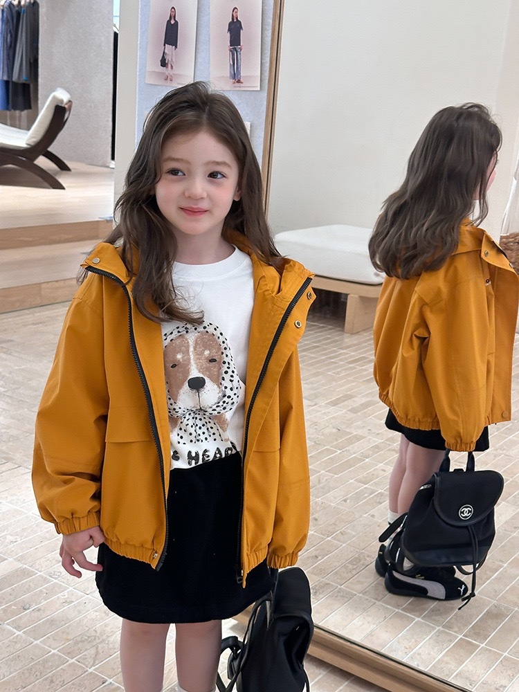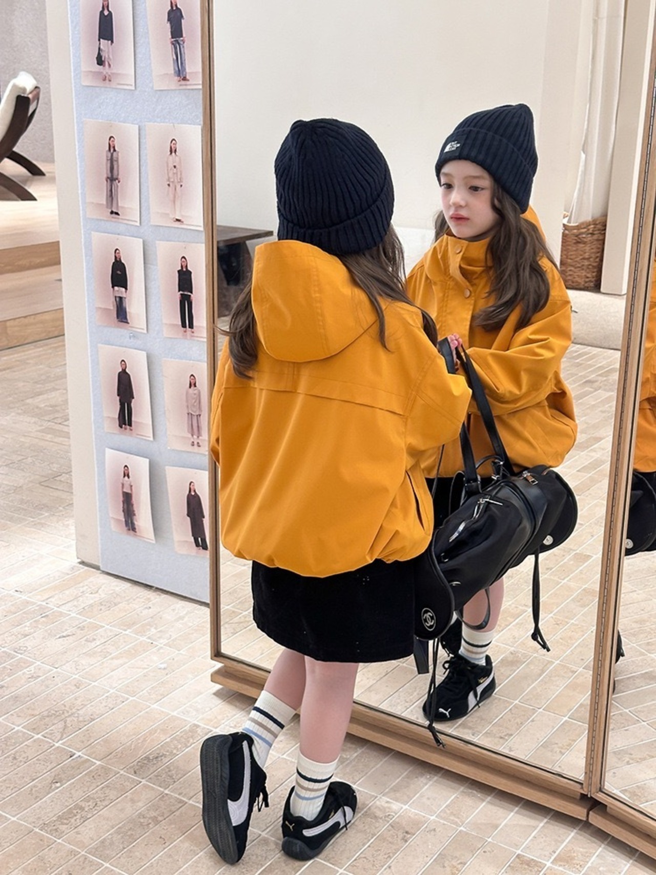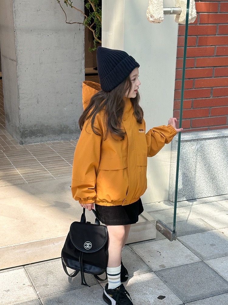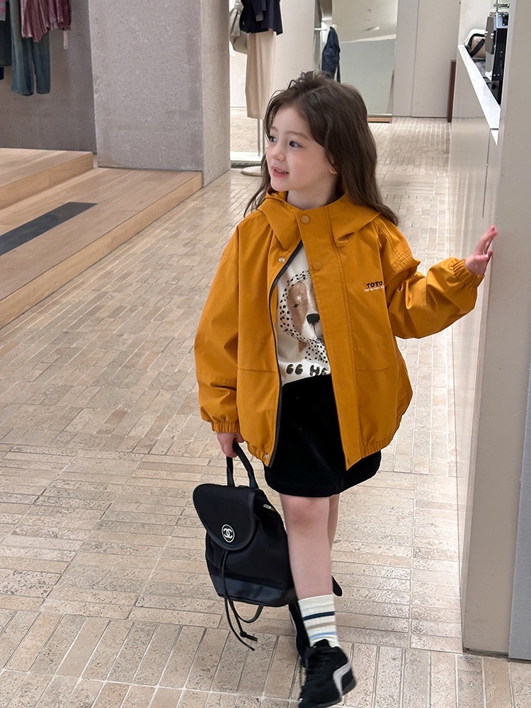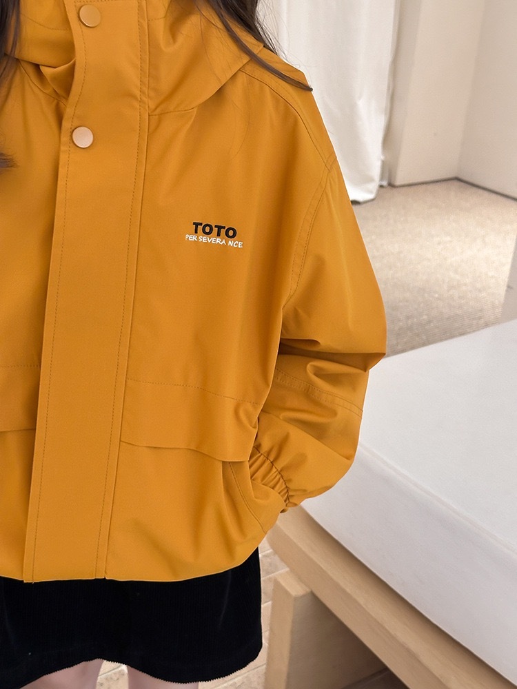 子供服 ジャケット 防風 フード付き イエロー 春秋 アウトドア 通学 通園 カジュアル 男女兼用 韓国子供服 キッズアウター