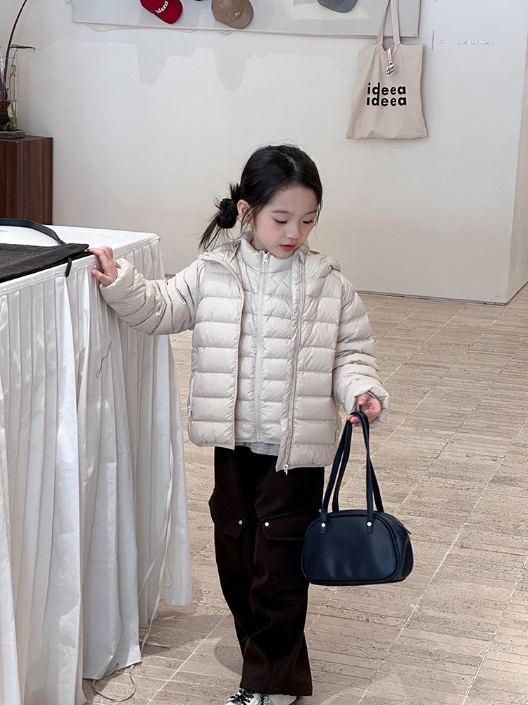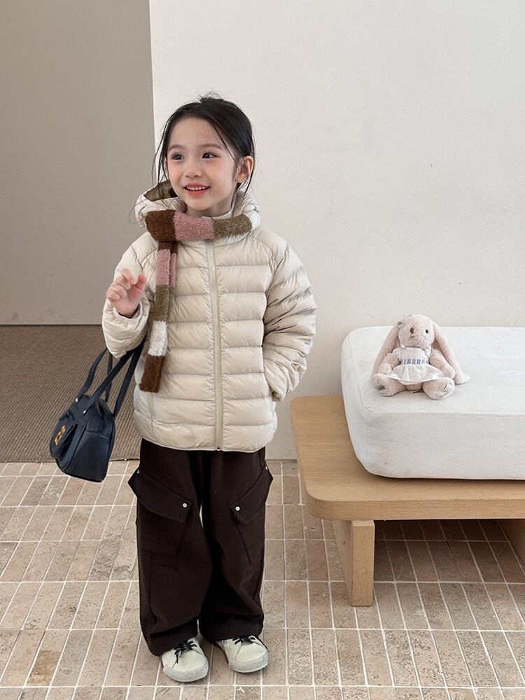 上質な白鸭绒をたっぷり使用した、暖かくて軽いキッズダウンジャケット。