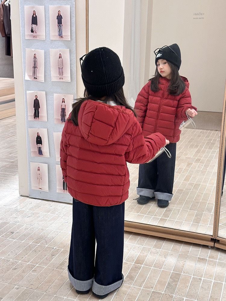 子供服 ダウンジャケット 赤 レッド キッズ 女の子 男の子 防寒 軽い あったか 冬服 子どもアウター 韓国子供服 通園 通学 防寒着 フード付き おしゃれ かわいい 兄弟姉妹リンクコーデ 90cm〜170cm