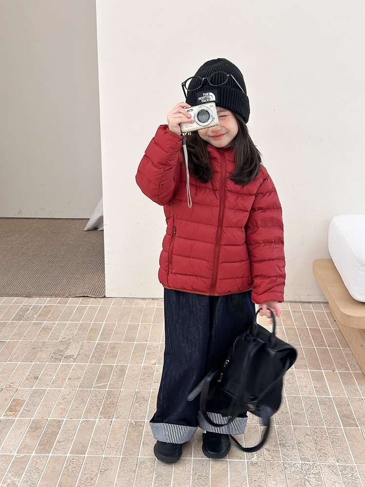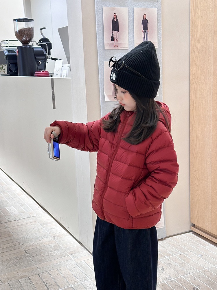高品質ダウン90%使用、軽さと暖かさを両立した冬に大活躍のキッズダウンジャケットです。
