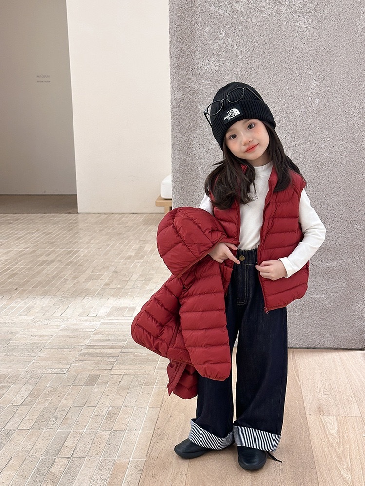 子供服 ダウンベスト レッド 赤 キッズ 女の子 男の子 防寒 軽量 あったか 冬服 ベスト 通園 通学 おしゃれ 韓国子供服 冬アウター リンクコーデ 90〜170cm