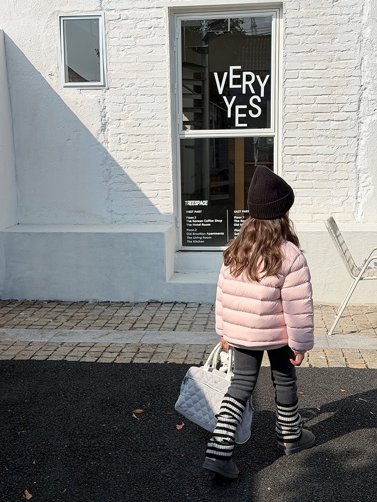シンプルなデザインで通園・通学・お出かけ・撮影にもぴったり。落ち着いたくすみピンクトーンはどんなパンツやスカートにも合わせやすく、冬のコーデを明るく華やかに仕上げてくれます。