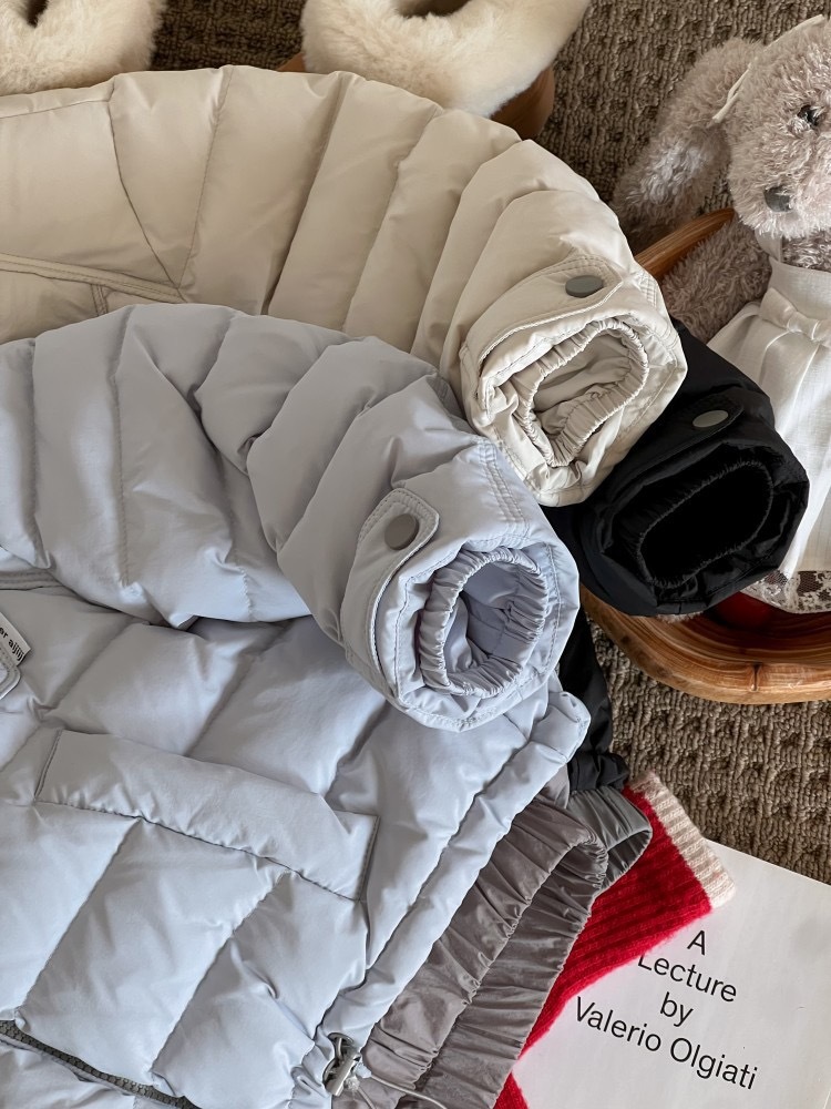 ※本商品説明は「子供服 ダウンジャケット アイスブルーショート丈 白鴨ダウン90%」に対しての内容です。写真内の帽子・眼鏡・バッグ・靴などは撮影用小物であり、販売対象には含まれておりません。