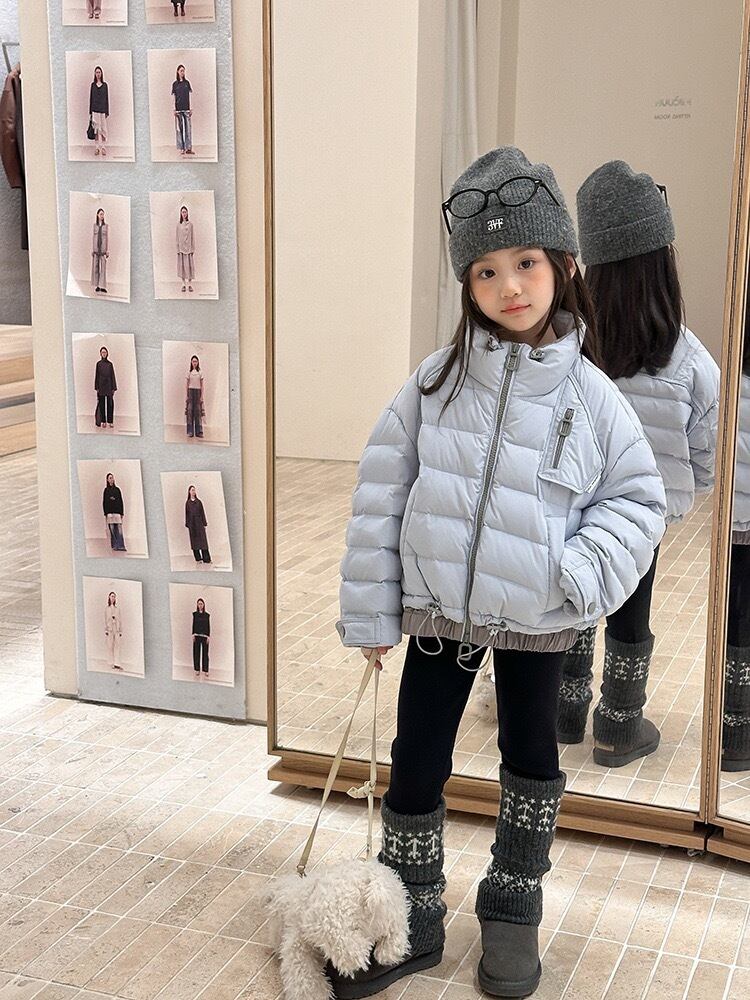 子供服 ダウンジャケット アイスブルー白鴨ダウン 防寒 軽量 ショート丈 ブルー女の子 男の子 通園 通学 韓国子供服 冬服 アウター シンプル おしゃれ かわいい 90cm〜170cm