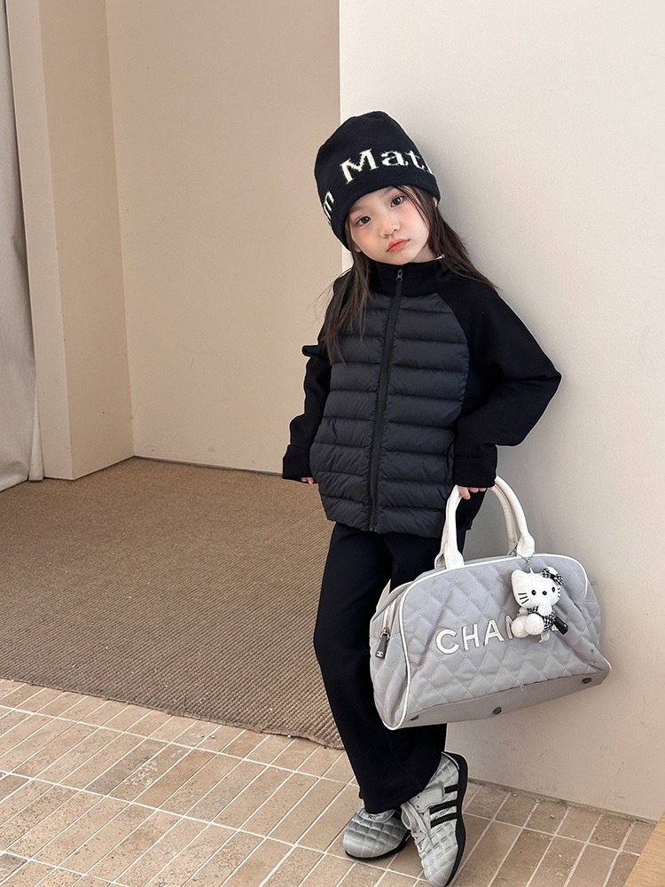 ※本商品説明は「子供服 ダウンジャケット ブラック ショート丈 白鴨ダウン90%」に対しての内容です。写真内の帽子・パンツ・バッグ等は撮影用小物であり、販売対象には含まれておりません。