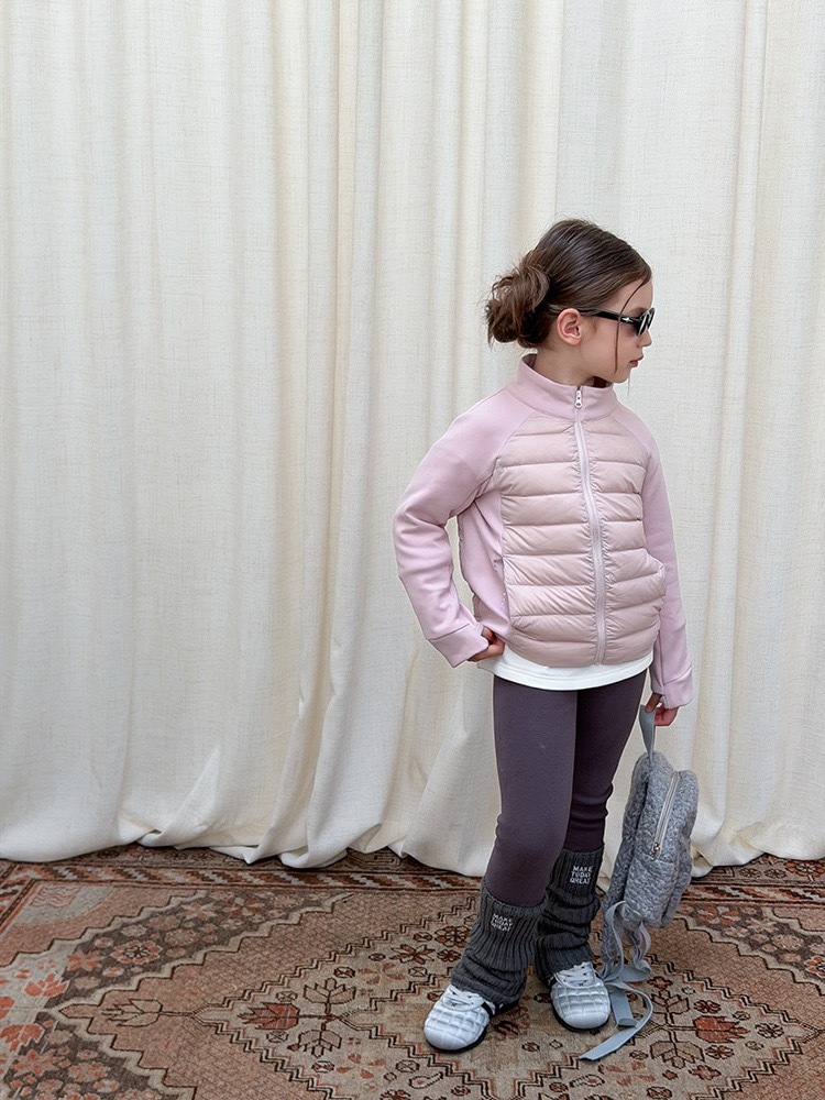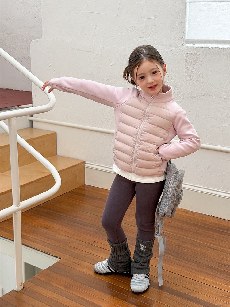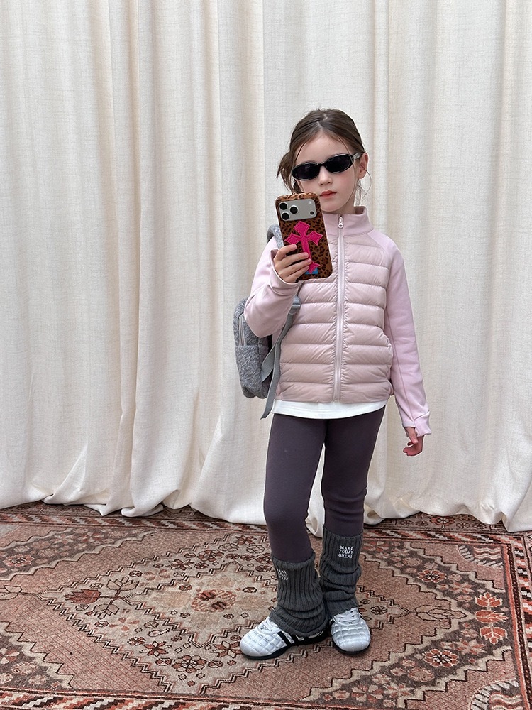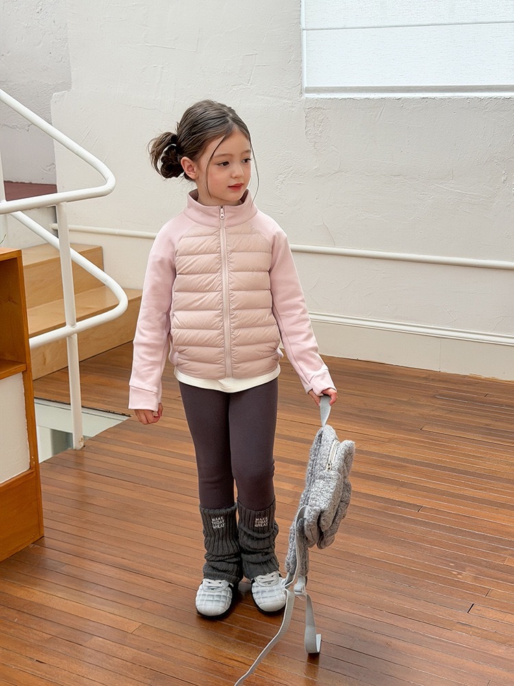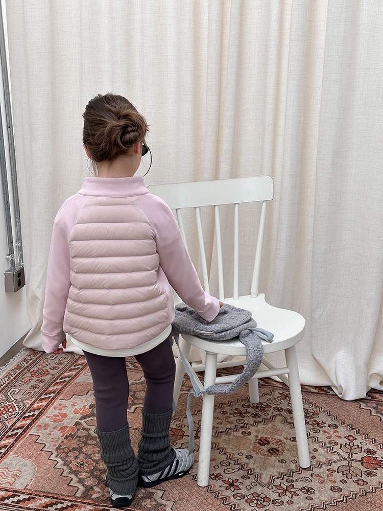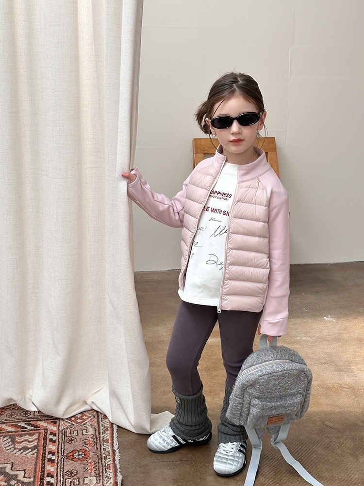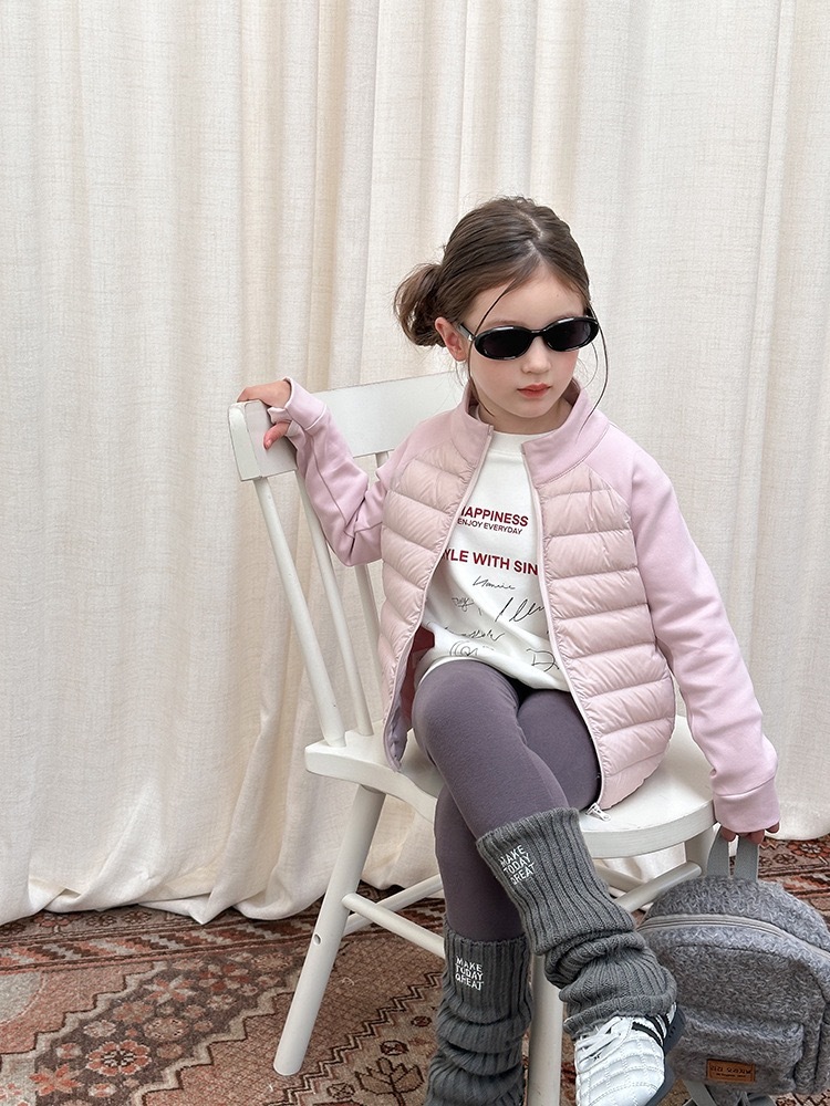 上質な白鴨ダウンを90%使用した、軽量で暖かいショート丈ダウンジャケットです。柔らかなピンクカラーが優しい印象を与え、お子様の可愛らしさを一層引き立てます。ふんわりとしたボリューム感がありながら軽く、着心地も快適。動きやすさと保温性を兼ね備え、寒い季節でも元気に過ごせる一着です。