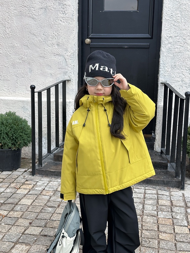 キッズアウター 子供用ジャケット 防風ジャケット 中綿ブルゾン 秋冬コート 通園 通学 カジュアル 男女兼用 マスタード 黄色 アウトドア 暖かい かわいい