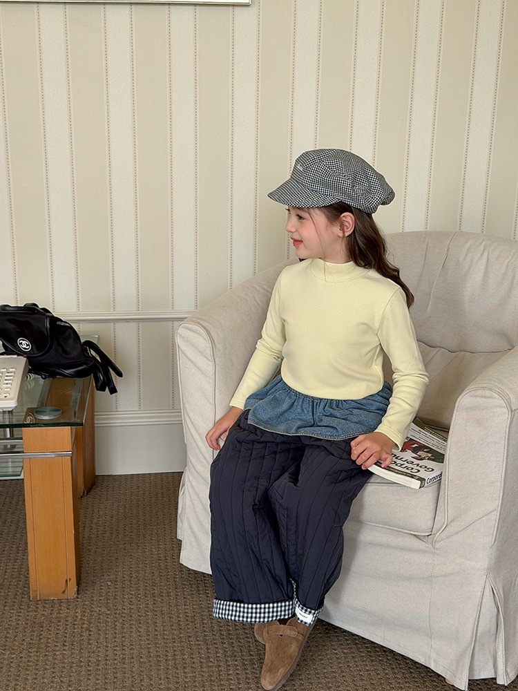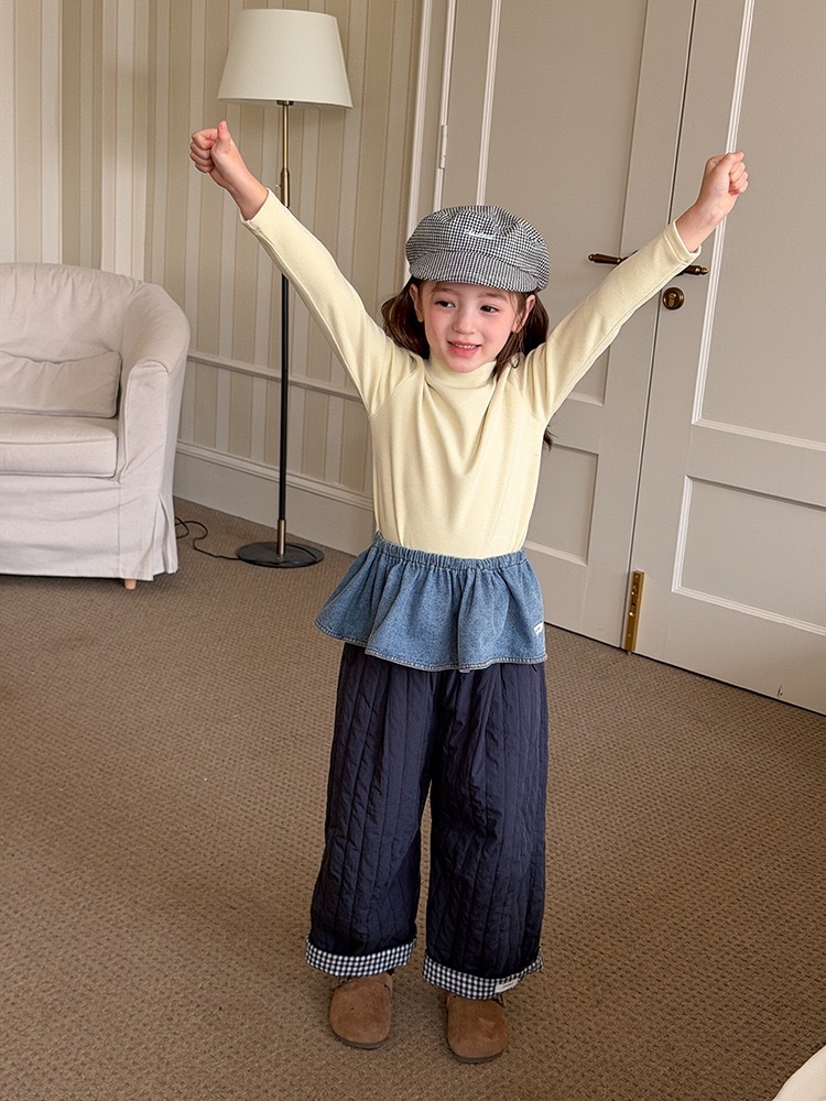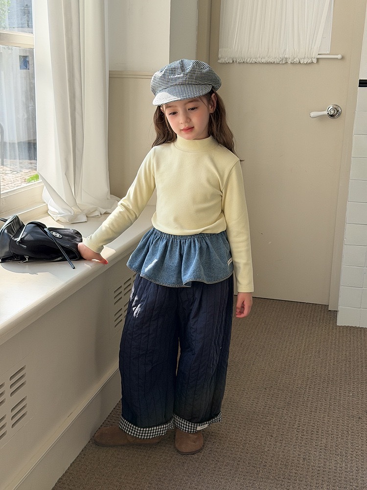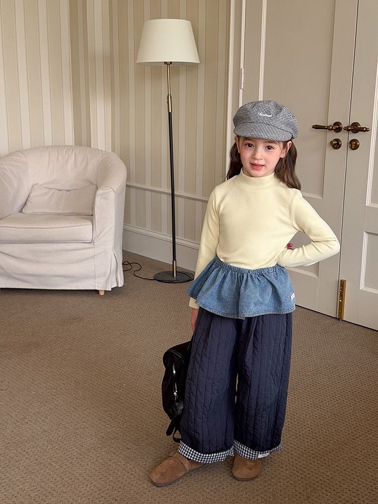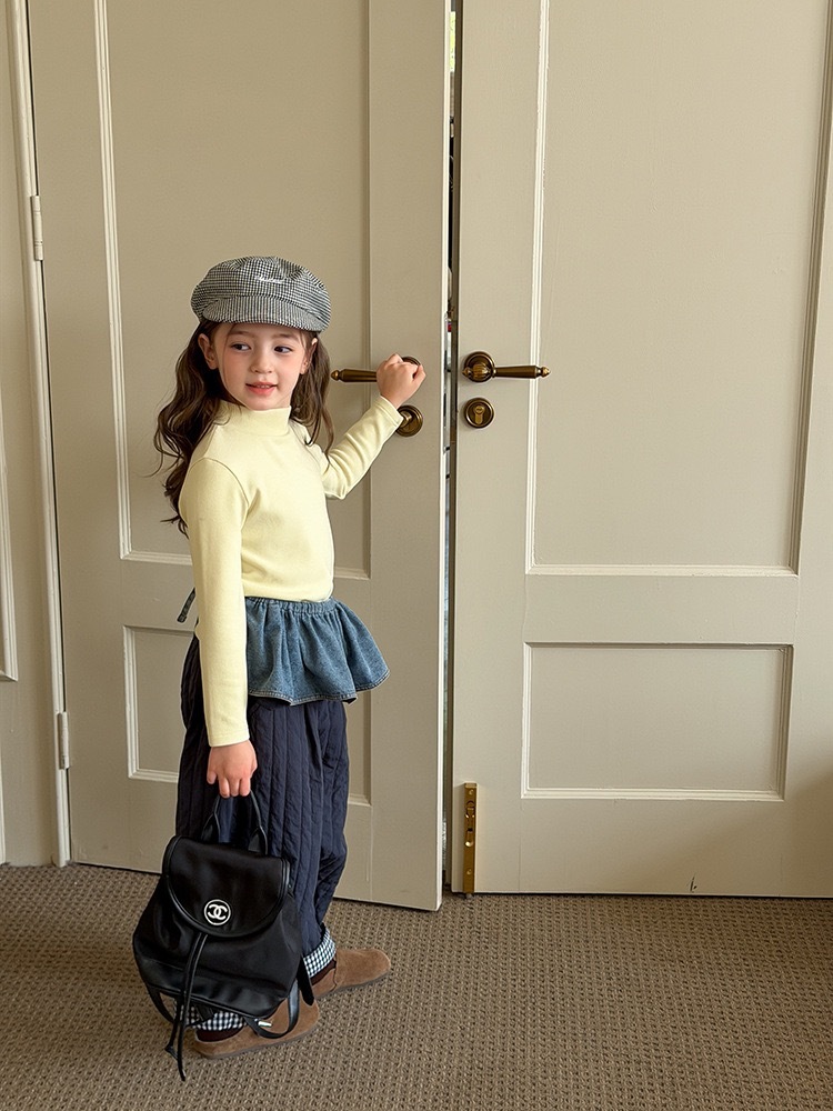 やさしいクリームイエローの色味が可愛らしく、お子様のコーディネートに温かみをプラスしてくれるハイネック長袖トップスです。柔らかく伸縮性のあるモスウール混素材を使用し、通園・通学・お出かけ・室内着としても快適に着用いただけます。