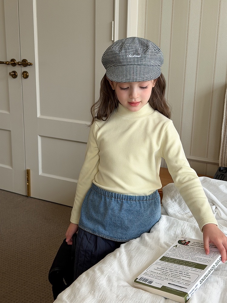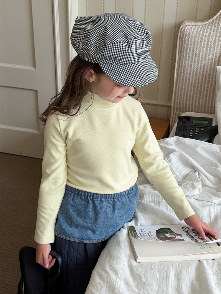 キッズトップス 子供服 ハイネック 長袖 モスウール混 あったかインナー 秋冬 女の子 男の子 クリームイエロー 柔らか素材 通園 通学 暖かい シンプル