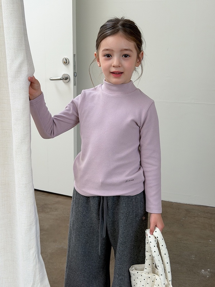 子供服 ハイネック 長袖 トップス インナー モスウール混 ラベンダー パープル 紫色 女の子 秋冬 通園 通学 柔らか素材 暖かい ベーシック シンプル