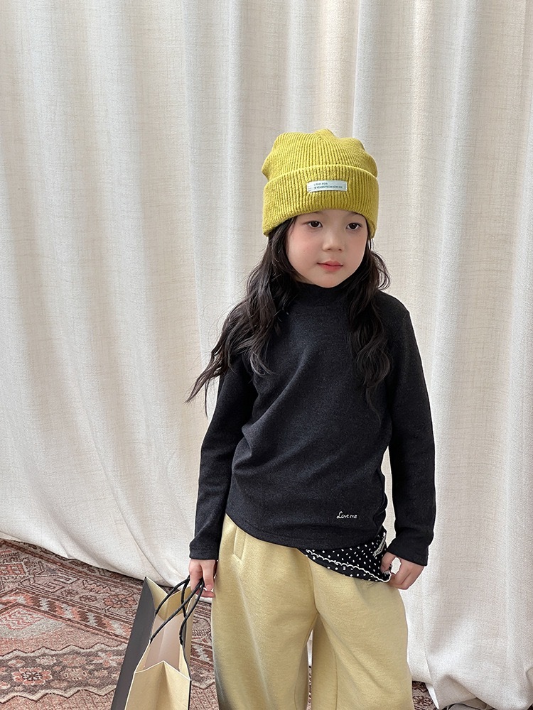 子供服 ハイネック 長袖 トップス インナー チャコール ブラック 黒 モスウール混 秋冬 女の子 男の子 通園 通学 シンプル 柔らか素材 暖かい ベーシック