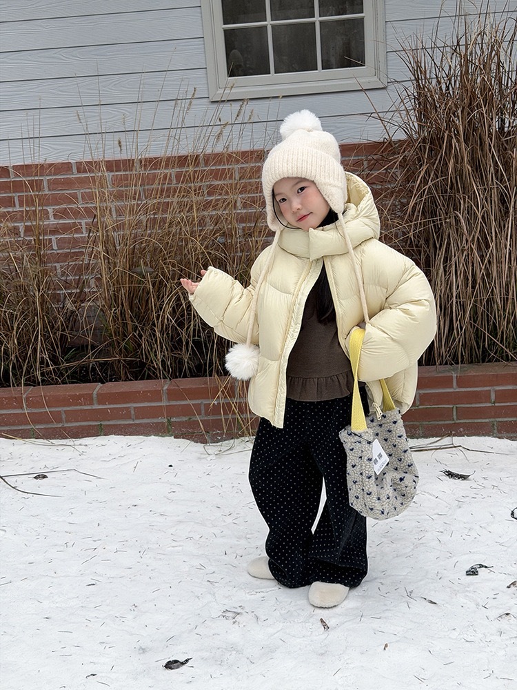 ※本商品説明は「子供服 ショートダウンジャケット 米杏色 白鴨ダウン90%」に対しての内容です。写真内のインナー・ボトムス・バッグ・靴などは撮影用小物であり、販売商品には含まれておりません。