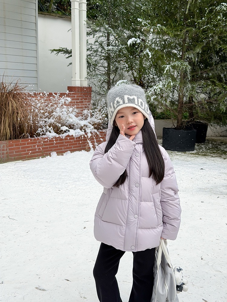 子供服 ダウンジャケット ライトパープル 淡紫色 アウター 冬 女の子 男の子 防寒 軽量 暖かい 子どもコート 通園 通学 おしゃれ かわいい くすみカラー キッズファッション