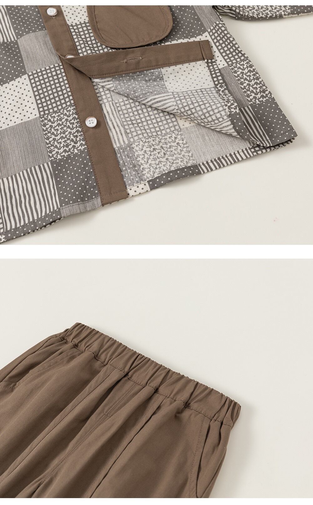 秋冬用 チェック柄 長袖 上下セット 100%コットン ベビー キッズ ジャケット&パンツ 80-140cm グレー×ブラウン 長袖ジャケット パンツセット 子供服 秋冬用 上下セット おしゃれ 保温 | Oct.ベビーショップ
