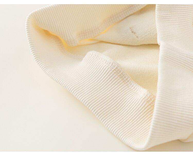 • パンツ: 95%綿と5%スパンデックス素材で作られており、伸縮性があるため動きやすく、ウエスト部分は柔らかいゴムで快適なフィット感を提供。サイドには便利なポケットがあり、おもちゃや小物を入れるのにも便利です。裾にはリブがあり、ズレにくいデザインになっています。