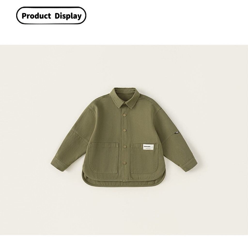キッズ アーミーグリーン ジャケット 100%コットン 春秋向け ボタン付き袖口 子供用 大容量ポケット クラシック襟 ゆったりフィット ユニセックス サイズ120〜160cm対応 男の子 | Oct.ベビーショップ