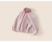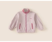 お子様が寒い季節も快適に過ごせるようにデザインされたフリースジャケットです。軽量で保温性に優れた100%ポリエステル素材を採用し、柔らかな肌触りが特徴です。シンプルで洗練されたデザインに、可愛らしいアルファベット刺繍がアクセントとなっています。機能性とファッション性を兼ね備えた一着です。