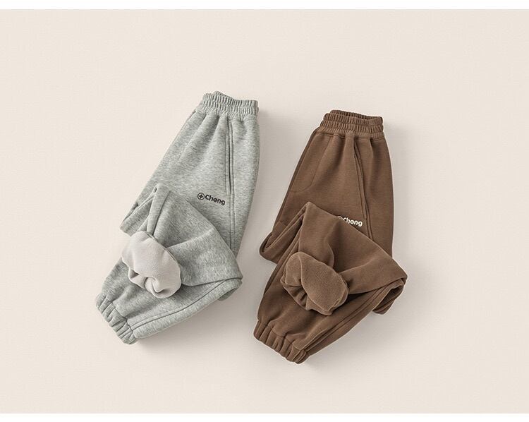 冬用 厚手裏起毛 子供用 カジュアル スウェット パンツ 柔らかい 暖かい 防寒 保温 パンツ ウエストゴム仕様 男女兼用 両サイドポケット付き 110-160cm 浅灰色 コーヒーブラウン | Oct.ベビーショップ