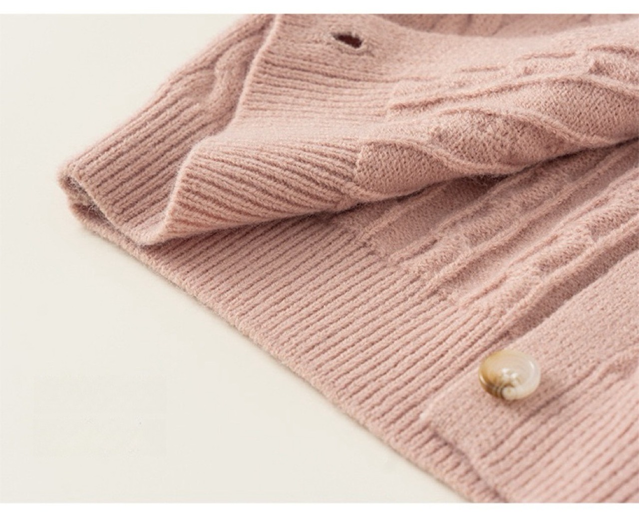 • ケーブル編みデザイン:伝統的なケーブル編み模様が高級感を演出。日常使いからお出かけまで、幅広いシーンで活躍します。
