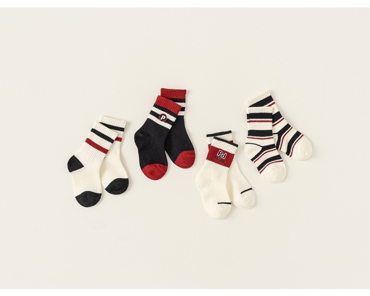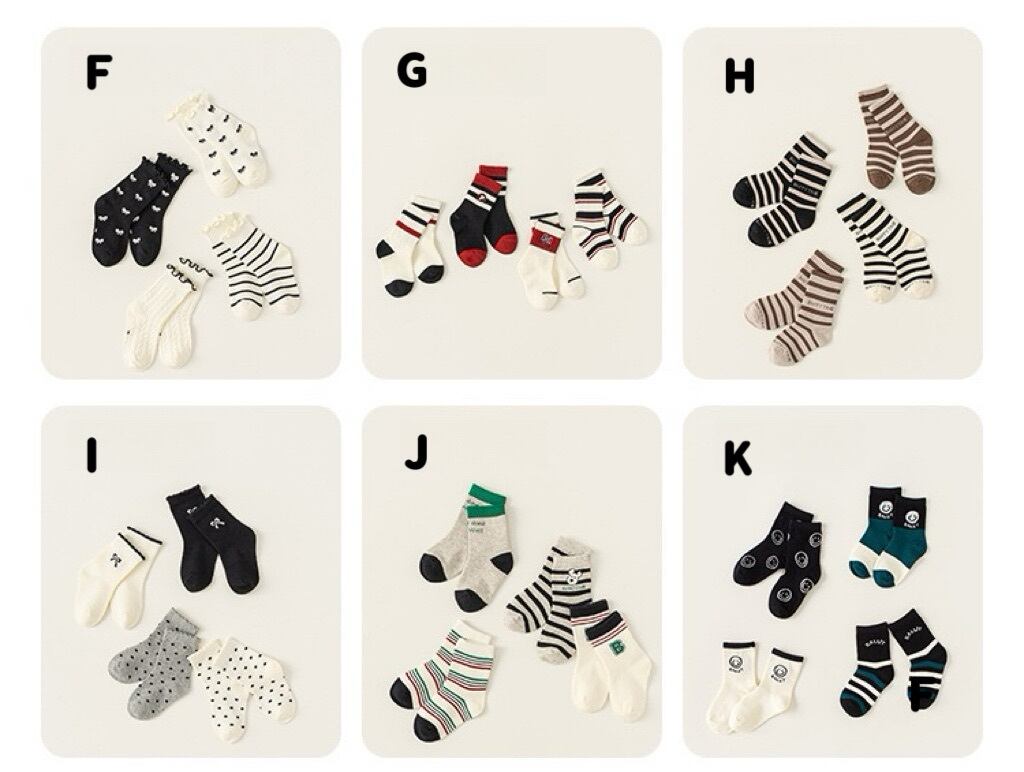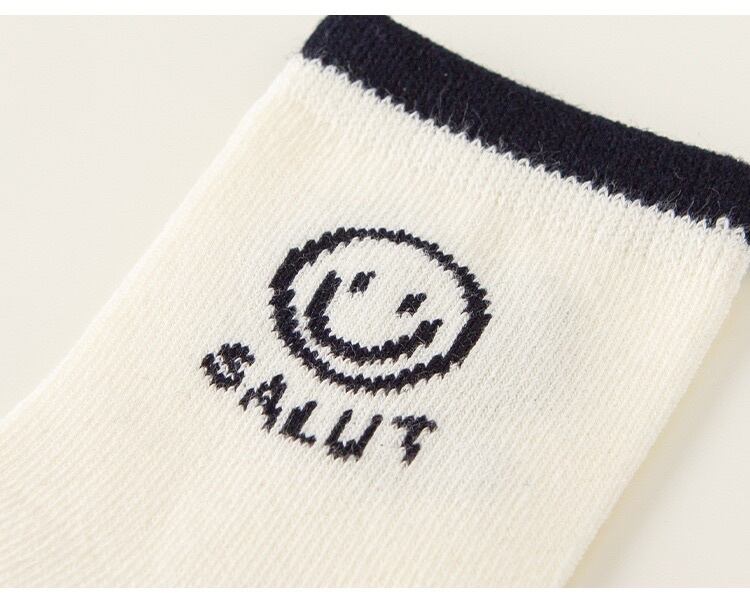 ベビー用 キッズ用 おしゃれ ソックスセット 5足組 春秋対応 柔らかコットン素材 女の子 男の子向け デザイン豊富 蝶結び 丸ドット 英字ボーダー カジュアルボーダー ブルースマイル柄 男女兼用 子供用 4足セット | Oct.ベビーショップ