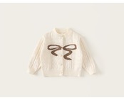 大きな蝶結びの刺繍が目を引く、ケーブル編み仕様の女の子用ニットカーディガンです。柔らかい素材で肌触りが良く、お子さまの快適な着心地を実現しました。春と秋に最適なデザインで、カジュアルからフォーマルなシーンまで幅広く活用いただけます。