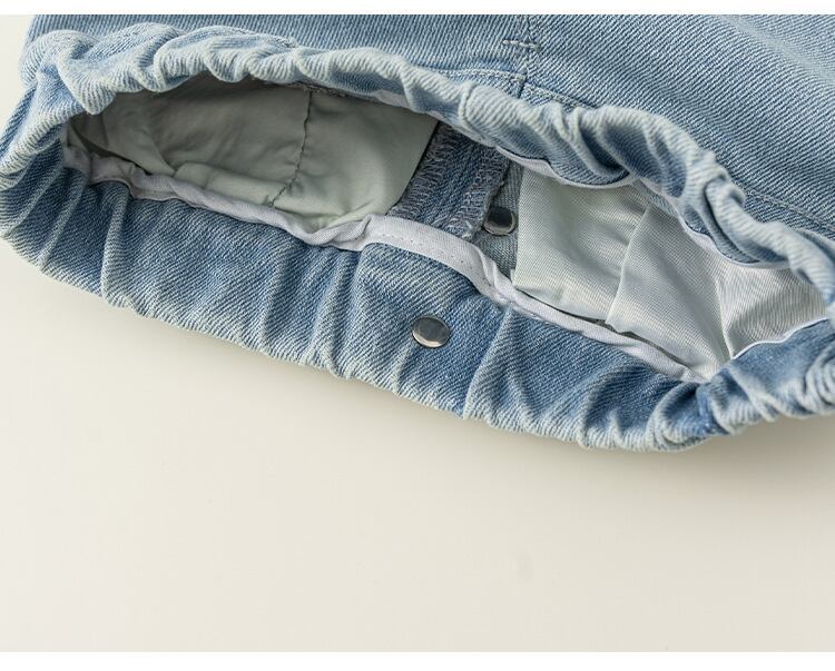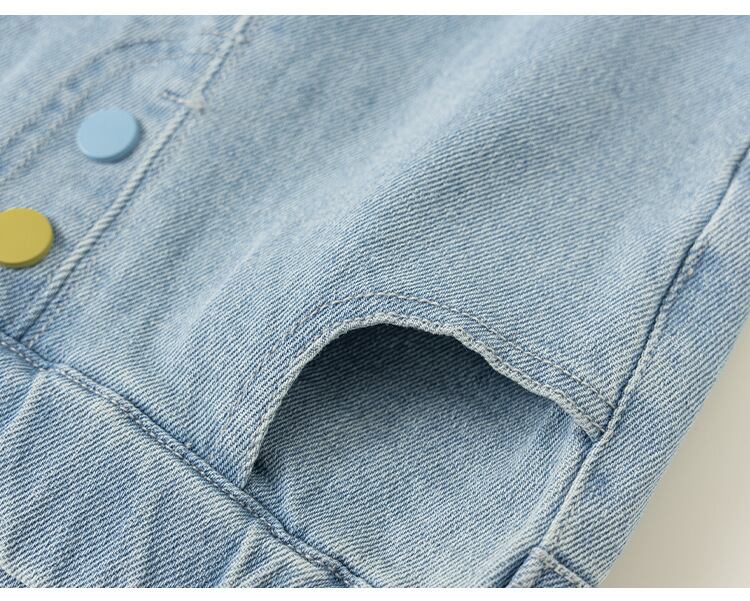 春秋の季節にぴったりな適度な厚みのデニム生地を使用しており、カジュアルスタイルやお出かけコーデにも活躍。90cmから130cmまでのサイズ展開で、お子様の成長に合わせたサイズ選びが可能です。