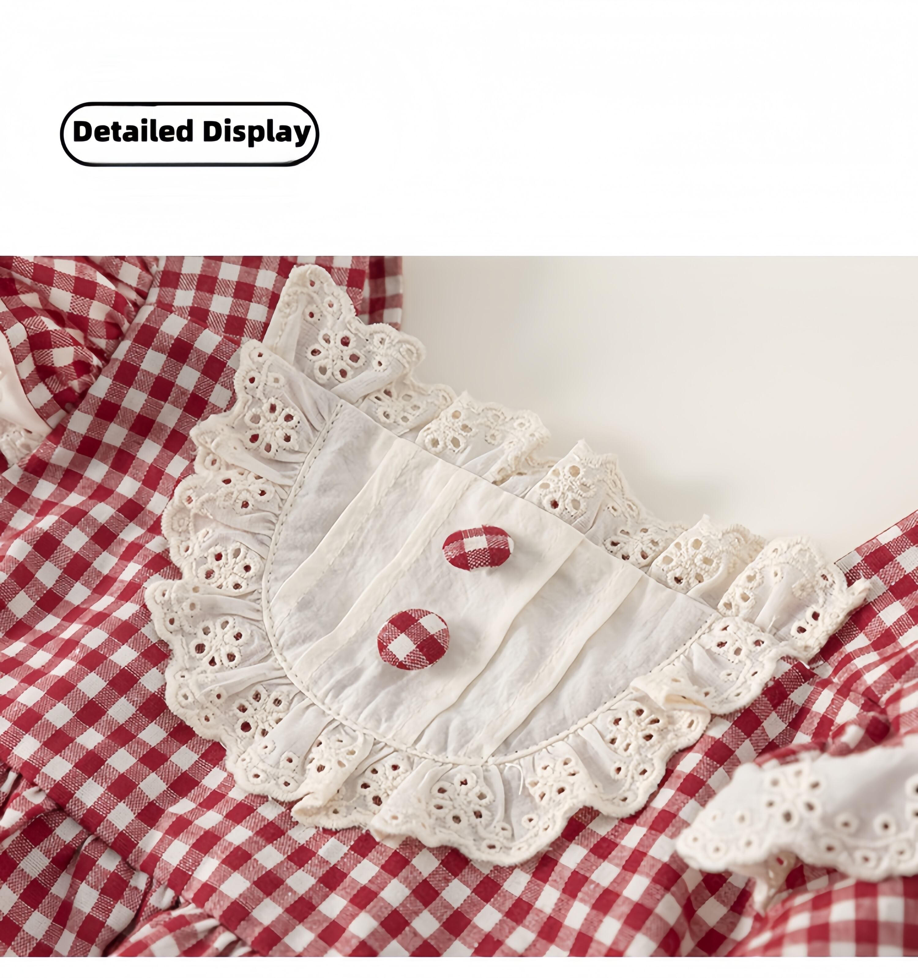 • 目を引く赤のギンガムチェック柄で、ナチュラルな可愛らしさを演出